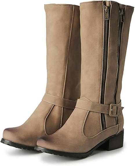 Amazon.co.jp: Women's Block Heel Knee ladies wide calf knee high boots
