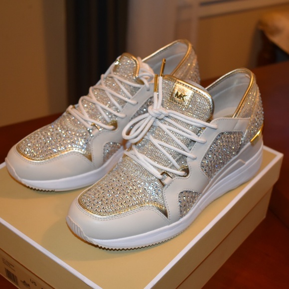 michael michael kors liv glitter and rhinestone trainers